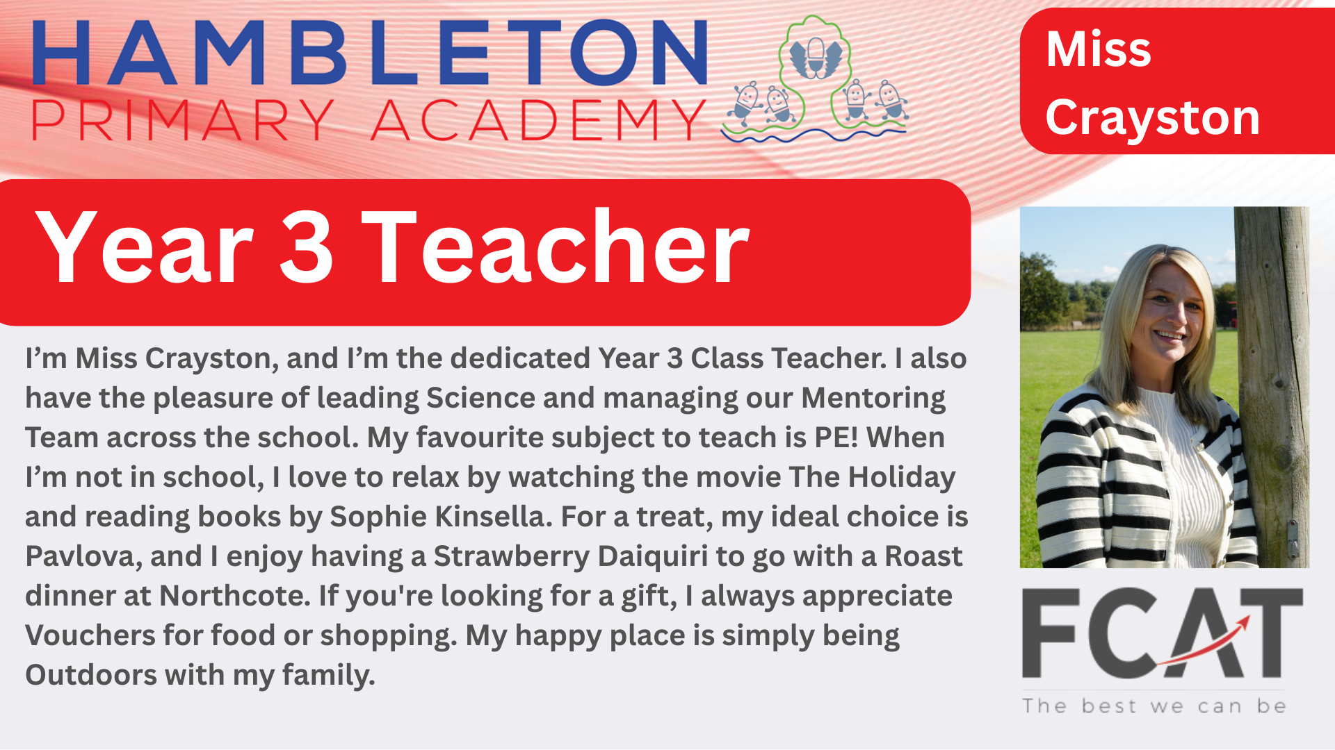 At our school, we pride ourselves on having a passionate and committed team. We've created this "Meet the Staff" book to help you put faces to names and learn a little more about the people caring for and educating your children. Read about each member of staff, their key roles, and the subjects they lead. It's a great way to discover the professional and personal interests that drive our team every day.
